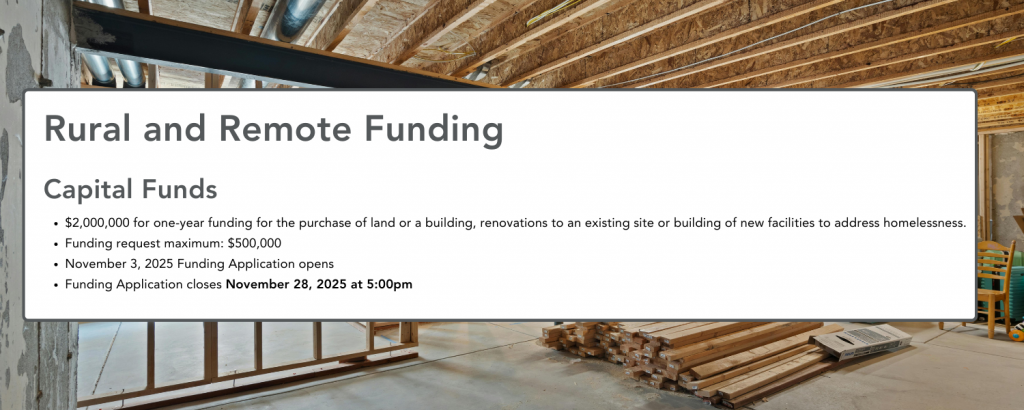 To learn whether your community, and which activities, are eligible under this Rural and Remote Stream, visit: Reaching Home: Canada’s Homelessness Strategy Directives